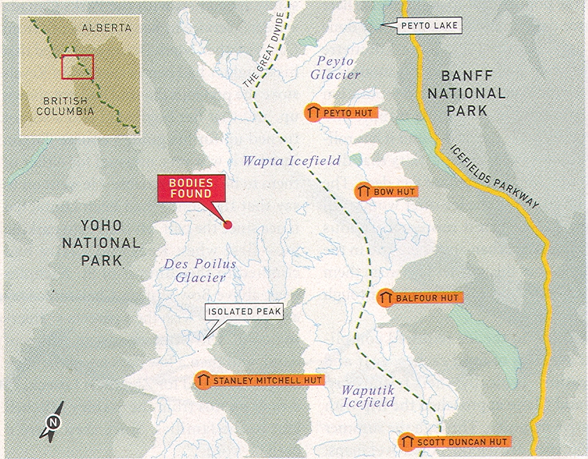 В тот вечером, сотрудники парка позвонили и сообщили семьям Диксонов в Британской Колумбии и Бренинкмайерам в Онтарио ужасную новость – тела их детей найдены на Уапте, и скорее всего они погибли, когда обрушилась их снежная пещера.