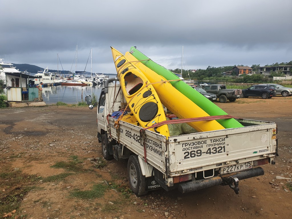 Три лодки до Находки, вернее до баз на Шепалово едут на грузовом такси, Артем везет собственную лодку сам. Никита едет с водителем, а нас с Наташей везет ее коллега по беговым делам Антон, за что ему огромное спасибо.