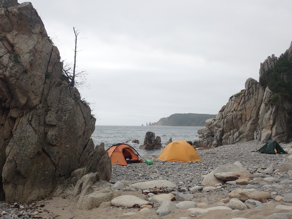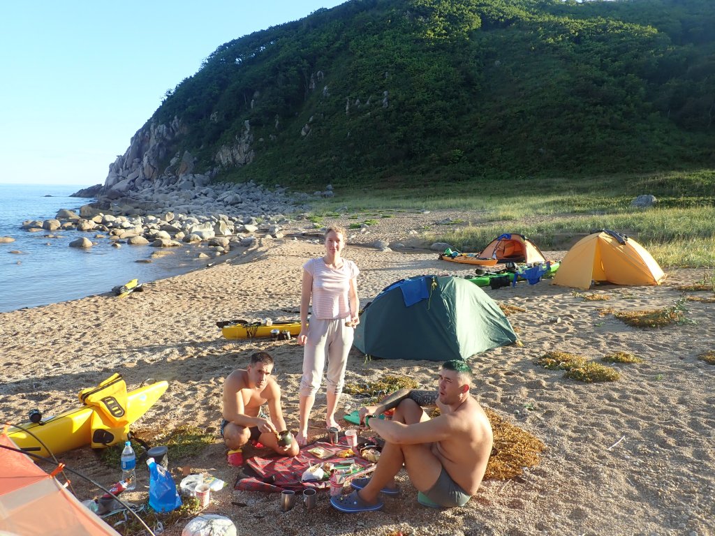 По соседству – на самом деле каяк, двойка, мужчина и женщина, идут некоторое время из Находки, больше недели, мысы проходят с большим скрипом, и ждут погоду. Сами с Татарстана. Особо мы не общаемся, ибо хочется отдохнуть, как морально, так и физически.
