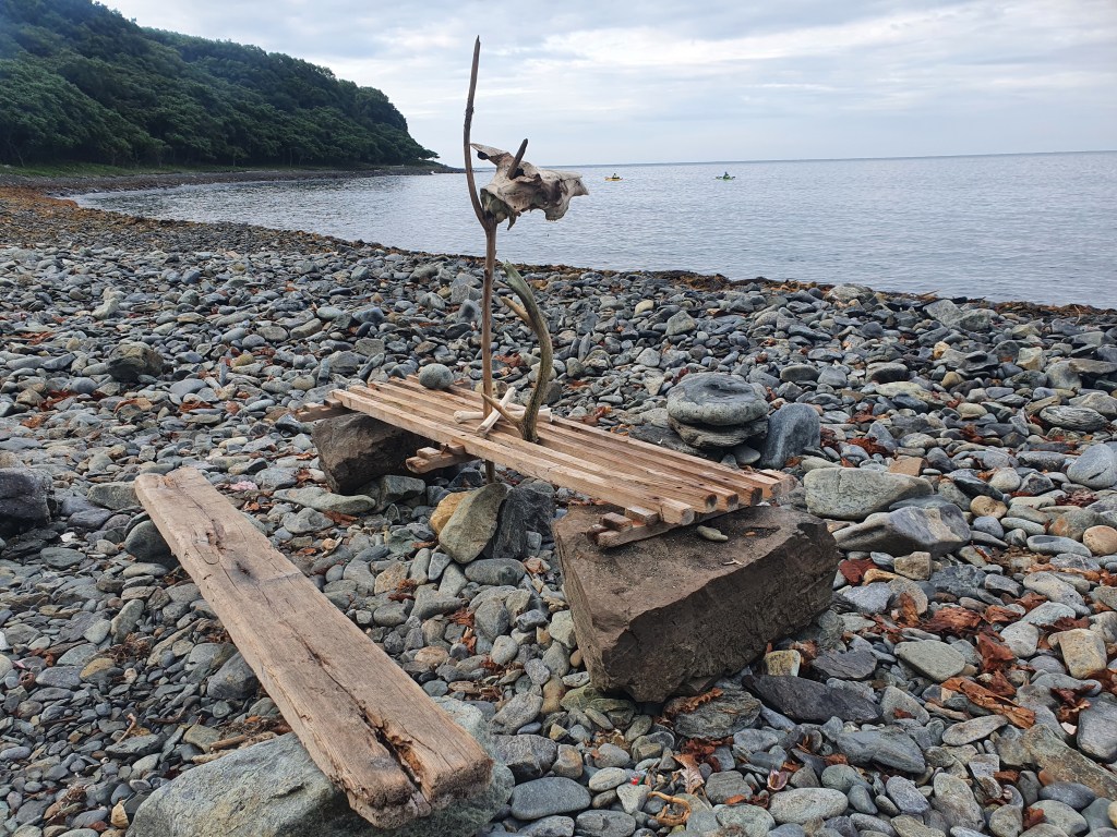 Никита в углу бухты нашел олений череп и гордо водрузил на нос лодки. Решено назвать это место «Пляж оленьего черепа». День подходит к концу, и решаем, что не смотря на продолжение ветра до конца недели, с утра, пока будет окно до полудня, нужно двигаться дальше. Желательно, если получится до Бухты Успения.