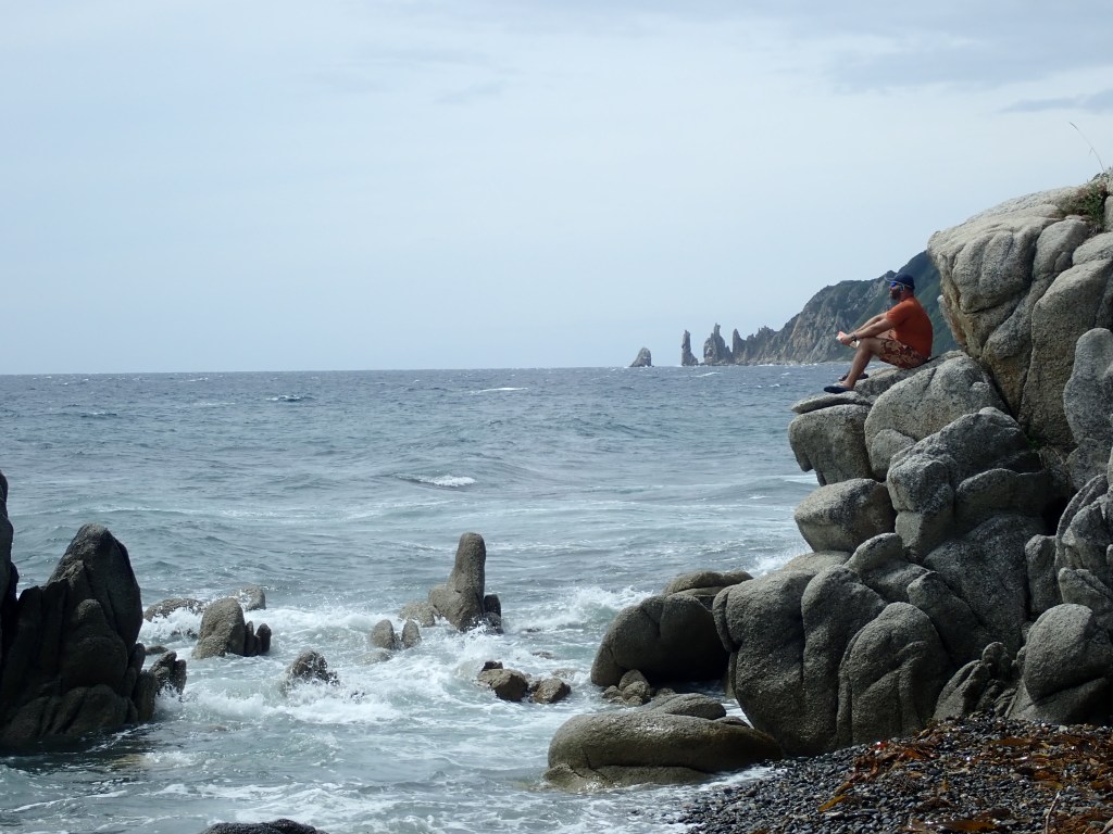 Очередная звездная ночь, с кучей метеоров, ветровое окно установилось уже в тот момент, когда мы пошли спать с вечера, и с утра совсем тихо. Однако с юго-востока приходит мощная зыбь, грохочет и кидает камни знатно. Закидываемся Наташиным геркулесом, энергия сегодня будет нужна, и чуть позже 7 мы на стартовой позиции.