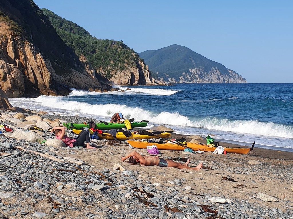 Немного жаль, что встреча была такой короткой, я в тайне надеялся пересечься с этой группой где-нибудь на ночевке и хорошенько расспросить. Я часто думаю о людях, приезжающих на Дальний Восток и идущих прибрежные маршруты на надувных байдарках – их много, и они платят немалые деньги за такие вояжи.
