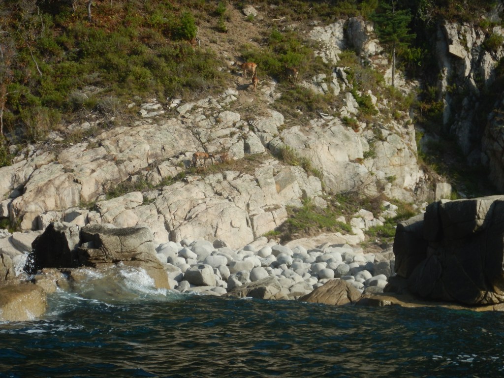 Далее, группа разделяется. Решаем идти на обед в бухту Кит (высаживаться раньше нельзя из-за того, что тут заповедник). Ребята идут вдоль берега, хотят осмотреть окрестности, я же беру Наташу на буксир, и режем бухту Тачингоуза напрямую.