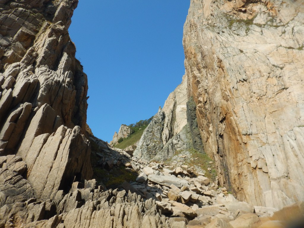 Задерживаюсь еще немного, прохожу двойную арку, которую я не помню с прошлого путешествия, а ребят нагоняю уже далеко на подходе к мысу Белая скала. Арку они прошли морем и не видели. Жарища такая, что мы по нескольку раз заходим в воду. Достопримечательностей сегодня будет немного меньше, поэтому режем напрямую на мыс Красная скала.