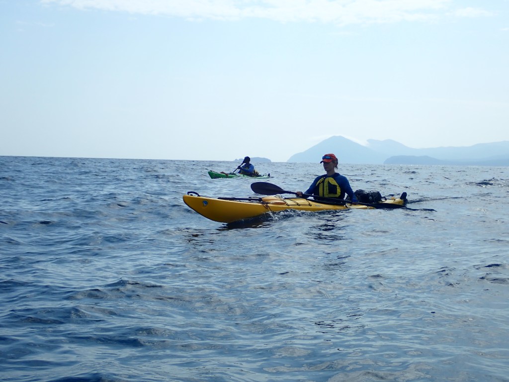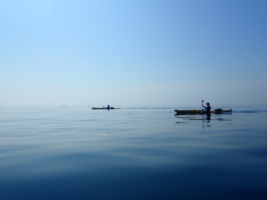 Валентин на горизонте, в дымке, подул легкий ветерок в спину, чтобы ускорить процесс, режем туда напрямую. Наташа в норме, поэтому решаем выжать из этого дня все, что можно. В какой-то момент в паре километров ползет гроза, но к моменту прибытия к мысу Титова – юго-западной створке бухты Валентина, ее след простыл.
