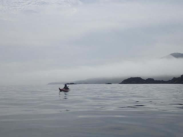 Проснувшись, Майк, Пит и Джордж, свернули лагерь и направились к ближайшему от мысу пляжу, который приметили накануне. Прогноз в 10:30 утра подтвердился ожидаемым ослаблением ветра, и они пошли обходить мыс Кука. На мысу ветер совсем стих, точно по прогнозу. Туман накатывал волнами и мешал им вплоть до того, как они подошли к реке Амос. При обходе мыса Клерка пришлось брать значительно мористее, но все же мыс был пройден. Почувствовав облегчение, они проследовали вдоль южного побережья к месту следующей ночевки.